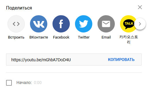 Кликните по ней. Высветится окно, предлагающее несколько вариантов, чтобы поделиться видео.