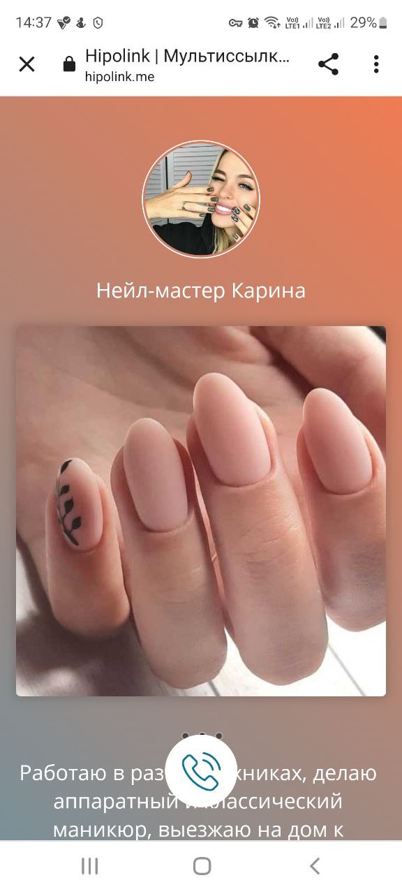 Самое большое преимущества сервиса Hipolink в том, что он абсолютно бесплатный. Вкладывайте деньги в своё профессиональное развитие и новые качественные расходники, оставаясь на связи со своей целевой аудиторией. Конкуренция в сфере маникюра велика, но, используя современные методы привлечения клиентов, вы обязательно найдёте своё место в данной индустрии. Если вы готовы перейти к созданию визитки - узнайте как лучше всего расположить блоки на сайте.