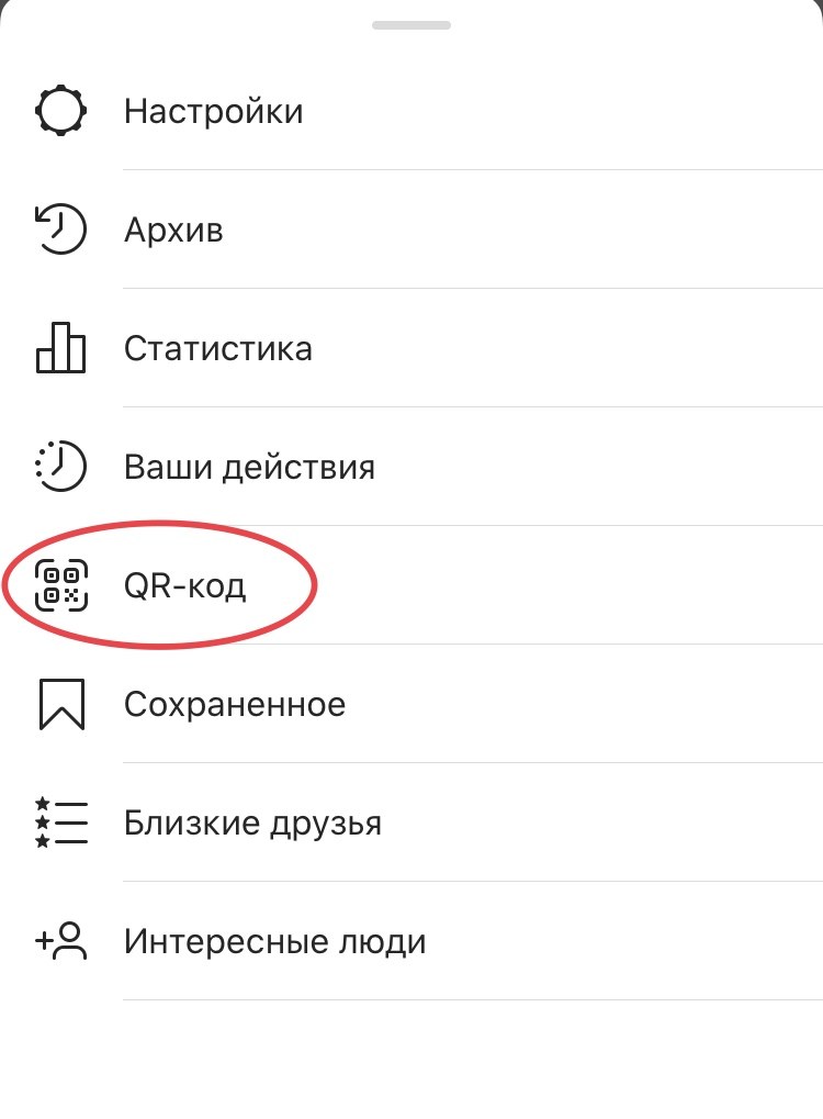 Шаг второй. В открывшихся пунктах выберите “QR-код”