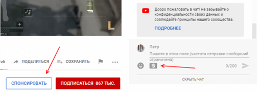 На Ютубе можно получать вознаграждения не только от прямых пожертвований пользователей. Для отправки денег блогеру в прямой трансляции также можно использовать "Суперчат". В нем отправляется сумма, а к ней прикреплется сообщение, которое все увидят. Обычно так отправляются небольшие суммы, но они являются хорошим подспорьем для автора.